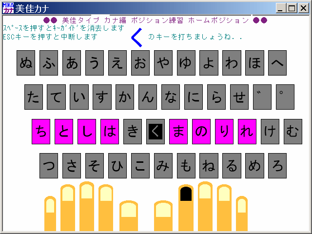 美佳のタイプトレーナ仮名編ポジション練習ホームポジション画面