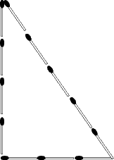 [問題]図のようにマッチ棒で3×4×5の直角三角形を作ります。面積はいくつでしょうか。答えは6です。三角形の「面積は底辺×高さ÷2」ですから、3×4÷2=6ということになります。