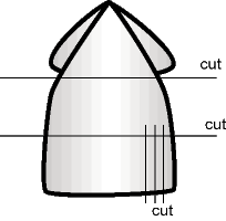 8.干したイカの身は、まず横に3等分、幅7mm程度に短冊状に切ります。エンペラや足も適当に5cm程度の長さになるように切ります。