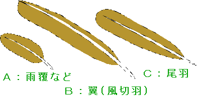 | 注) 雨覆(あまおおい)とは,翼(つばさ)をたたんだときに,翼の上にくる羽 |