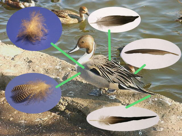ですから,冬,カモのいる池に行くと,いろいろな羽がひろえるチャンスがあります。