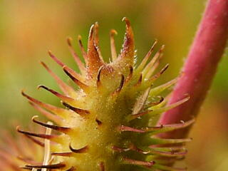 実のアップ。トゲトゲのさきっぽが,ちょっとだけ曲がっています。