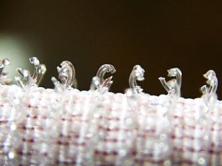 トゲを顕微鏡で見てみると,ベタベタしているのがわかります。