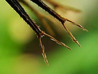 ほら,トゲの先のほうに,うしろに向いた,小さなトゲがついています。