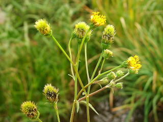 コセンダングサの花。下のほうに,花が終わったばかりの,若い種が見えます。
