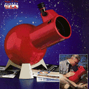 実はこのアイデアは決して新しいものではなく,もう20年以上前にアメリカのエドモンド社が発売した「アストロスキャン」と言う小型反射望遠鏡にも,ボール形のフリーストップ架台とストラップが付属していました。エドモンド・サイエンティフィックのサイトには,「アストロスキャン」を抱えて使っている写真があります。