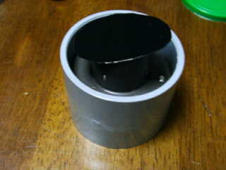 鏡筒の大部分は塩ビ管で作ります。VU50と言う,内径50mmの水道管パーツです。筒の肉厚は2mm。軽い望遠鏡ですから,この程度で剛性は十分でしょう。光路を斜めに折り返すので,塩ビ管を斜めにくり抜く作業が必要になりました。これを手作業で,プラスチック用ノコギリ1本でやろうと言うのだから,ちょっと精度に不安が残りますが,ま,削りすぎたらパテで埋めりゃいいか。