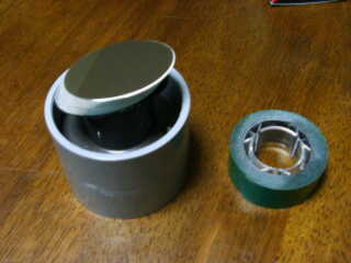 これに,強力両面粘着テープで,鏡を貼ってしまいます。(右側のが両面テープ)