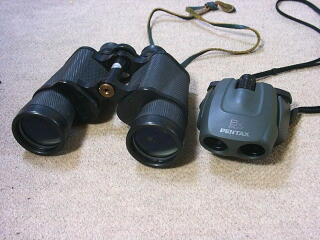 コンパクトなポロプリズムタイプの双眼鏡には,左右の対物レンズが近接した「寄り目」デザインのものが多数あります。ポロプリズムは外から見ると光路がクランク状に曲がっていますので,古典的な双眼鏡では,対物レンズの間隔を広く取るデザインにしていますが,コンパクト双眼鏡では,プリズムを内向きのクランク型に配置して小型化を狙っています。対物レンズの間隔を広く取ると,立体視に有利だと言う話もありますが,検証してみたことはありません。むしろ,対物レンズの大きい双眼鏡では,「寄り目」デザインにしようとすると,左右の接眼レンズの幅が目の幅よりも広くなってしまうので,必然的に対物レンズを外側に追い出すデザインになるのではないかと言う気もします。(同様の理由で,鏡体がストレートにデザインされるダハプリズム双眼鏡の場合,対物レンズの口径が60mm近くなると,目の幅が合わなくなってきますので,ふつうは50mmぐらいを設計上の限界としています。)