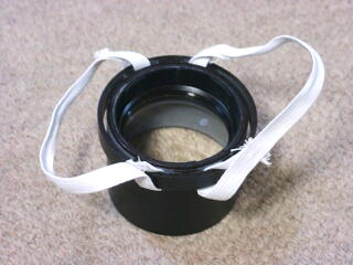 例によって塩ビ管です。本体はVU50用のジョイント。この内側に植毛紙を重ね貼りして,クローズアップレンズを押し込みます。双眼鏡との接続は,ゴム紐(笑)。cheap