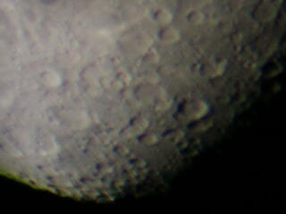 望遠鏡の性能があまり良くないので,色収差によって,エッジ部の着色が目立ちますが,まずまずの解像度の画像が得られました。これにアンシャープマスク等の処理を行えば,もう少し鮮明になると思いますが,あえて「お気楽」にこだわり,明るさ,コントラスト,カラーバランスの3つだけ,調整しました。