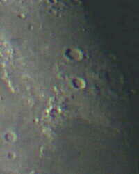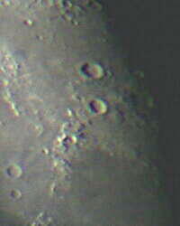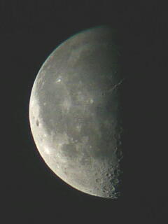 合成焦点距離は,[カメラの焦点距離]×[望遠鏡の倍率]で決まります。望遠鏡の倍率が20倍ですから,QV-8000SXを光学8倍ズーム+デジタル2倍ズーム(=640×480ピクセルの画面に,35mm判カメラの640mm相当の画像)まで引っ張れば,640×20=12800mm相当の「超望遠」になるわけです。この条件で撮影した画像を,画像処理し,320×240ピクセルに縮小したものが,これです。