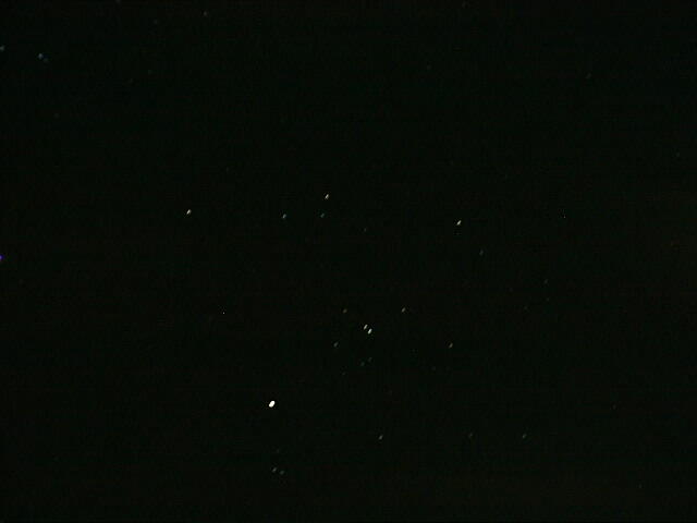 …とは言うものの,我が家の周囲では,肉眼で見える星は4等星がやっと。たまに透明度の良い明け方などには5等星も見えますが,ごくありふれた,街の中の星空です。しかし,カシオQV-8000SXには,「長時間露出」と言う武器がある。しかも,画像処理方法次第で,ある程度のことはできる。上の写真も,320mm相当で撮影した画像をトリミングし,コントラストを少々いじっただけです。けっこう綺麗でしょ。望遠にするとコントラストを稼ぎやすいですしね。