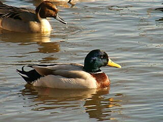 おなじみのマガモ。アヒルじゃありません。ちゃんと,春になったら北のほうへ渡ってゆく,野生の渡り鳥です。