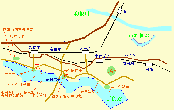 通称「楚人冠公園」。戦前のジャーナリストであり随筆家でもあった杉村楚人冠の邸宅跡です。段丘が手賀沼に向かって半島のように飛び出しているところに,邸宅跡はあります。ここから見下ろす手賀沼は,さぞかし素晴らしい風景だったと思われますが,今はお店やらバス通りなどの向こうに沼が見えます。昔と変わらないのは,いくつかの大きな木とシジュウカラの声ぐらいかも知れません。この近くに柳宗悦の邸宅(現在は個人宅のため見学不可)もあります(柳邸内にバーナード・リーチの工房もあったと言うことです)。