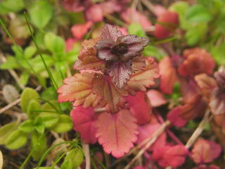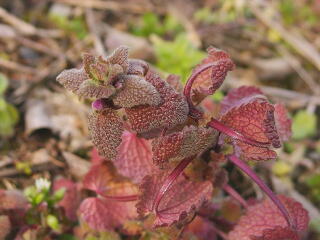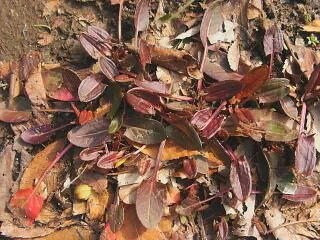 寒さに耐えている野草にも,葉っぱの赤いものがたくさん見つかります。これはそのまま枯れてゆくのではなく,春を待っている姿です。