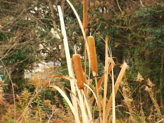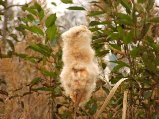 ガマの穂。タネがぎゅっと詰まっていて,