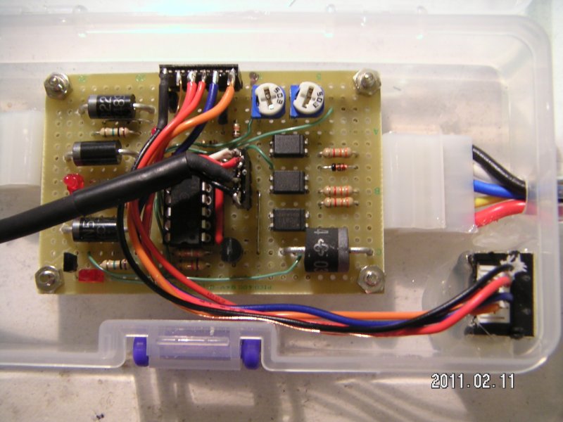 迂闊にも PIC に 12V を印加して火あぶりに(爆)。電源ラインの接続には十分に注意するべし(泣)