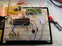 に直に入力されているが、これはもともとこのポートがシュミットトリガ入力になっているため。スイッチ入力のポートも内部プルアップに設定したためかなり部品点数を削減できた(が、後述の通り若干ノイズに弱い。最終実装時の配線取り回しには注意)。(2011/12/02