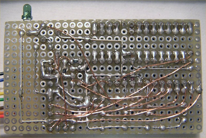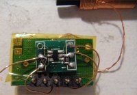 | 表示部裏 | 受信部 モジュール裏に絶縁テープを 貼って SOT変換基板上に トランジスタと抵抗 x 2 を実装。 |