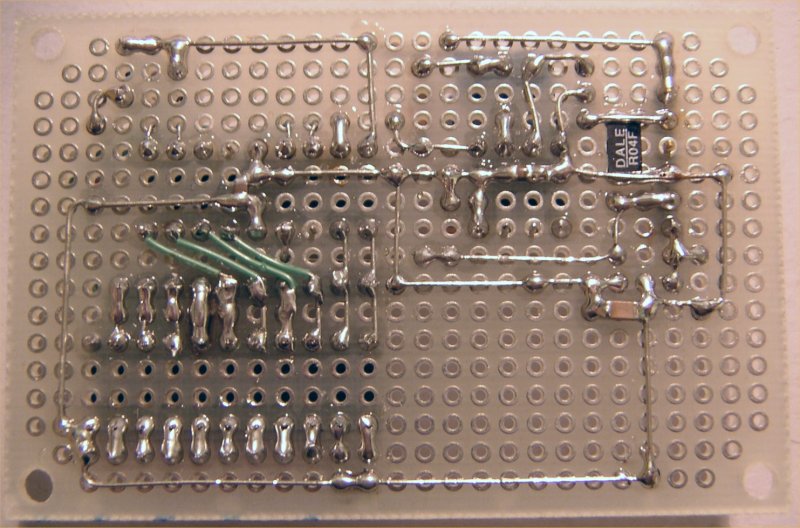 | 基板表 | 基板裏。 右上の黒いのが 電流検出用の微小抵抗 |