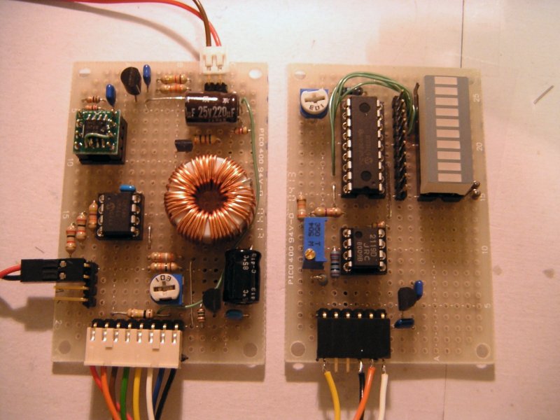 リアルタイムで電流をバー表示するだけならレベルメーター用 IC でこと足りるが、間欠的にでも電池電圧はモニタしたいので