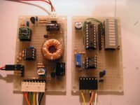 | 実運用時は MPPT充電基板(左)と連携させる。 MPPT基板にはリセットIC (4.6V) を搭載。 |