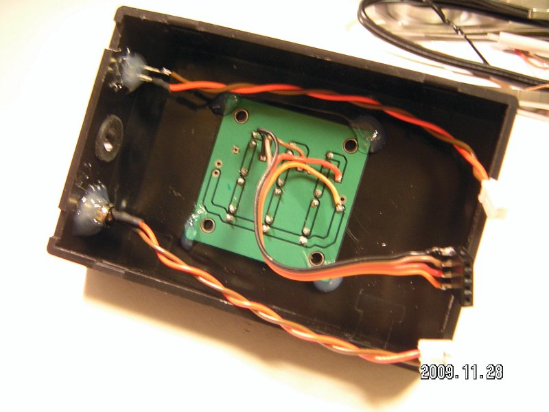 | 基板裏 | ケースへの実装。 ケースにはテイシンの ABS ケース TB-59 (W100xD65xH25) を使用。 |