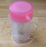 ステンドグラスランプ (二号機) 市販のステンドグラス(100V 仕様)をキャンプでも使えるようモバイルバッテリー駆動にし、さらに白色と電球色で点灯できるようにしたもの。 詳細はコチラ。 |