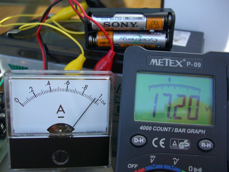 ただ PWM 周波数 2KHz が思いっきり可聴域のため、スイッチング音が「キリキリ」と鳴いて(汗)案外うるさい。実際に充電する際は屋外放置なので実害はないのだが、電流計の針を見てみると案外フラついているし(=充電電流量がかなり変動 =