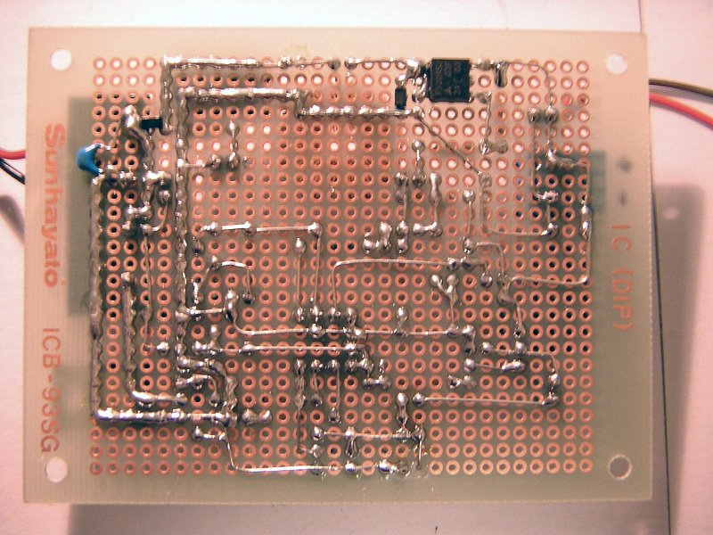 ある程度ブレッドボードで動作を確認した後、ユニバーサル基板上に試作して、秋の昼下がりに動作実験をしてみた。条件は以下の通り。