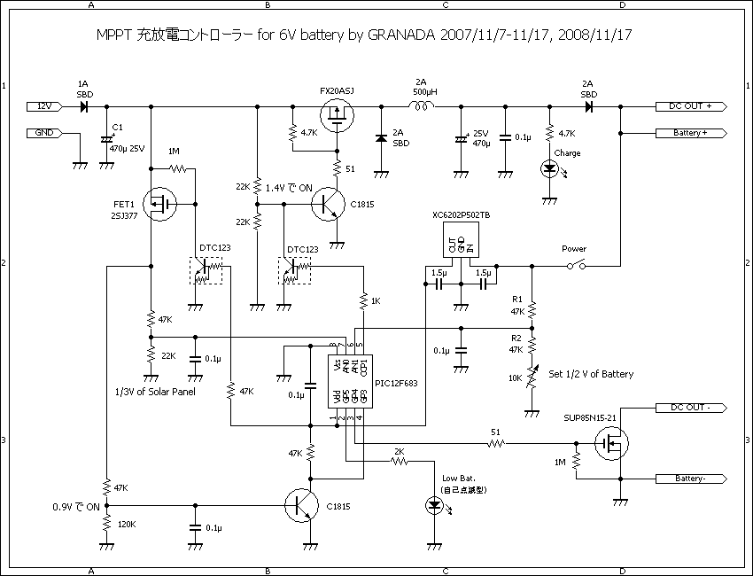 要となる MPPT 充放電コントローラは、ちょうど1年前に実験的に製作したものが活用されずに転がっているので、これを若干改造して使用することにした。今回使用した太陽電池の最大出力は推定