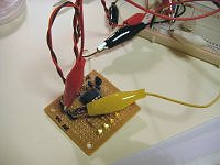 | まずはブレッドボードと 評価基板で動作確認。 この後、うっかり過電圧を入力し、 PIC が昇天(爆) |
