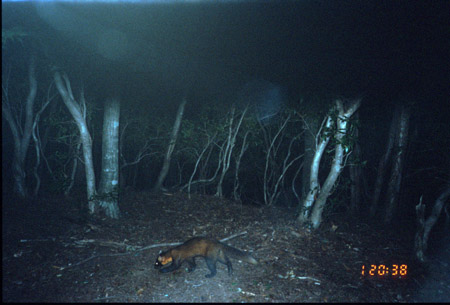 よく見ると1頭ではなくて,もう1頭が腹這いになっている。テンの交尾期は7〜8月とされているので,ペアなのかも知れなかった。