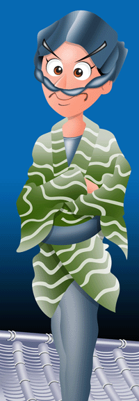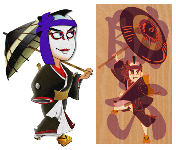●だいぶ昔にPainterで描いた 貼り絵風「助六」 と ●メンコ作品にした「助六」