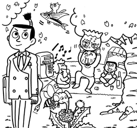 ここからは 『ありなないモノ探し』です! (絵の中にありえない箇所を探す 連載でした〜必ず金魚鉢が入ってます^^!)