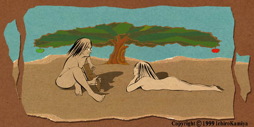 この絵はJhonとYokoをアダムとイブに... バックにBeatlesの象徴のリンゴの木 奏でる曲は.....Real Love..!!