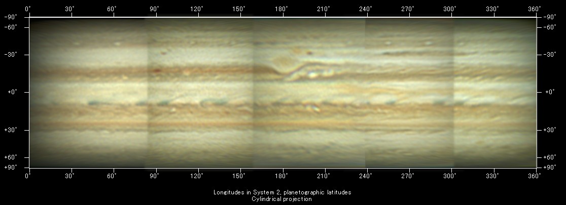 2012年8月27日〜30日(UT)の画像利用による木星の展開画像