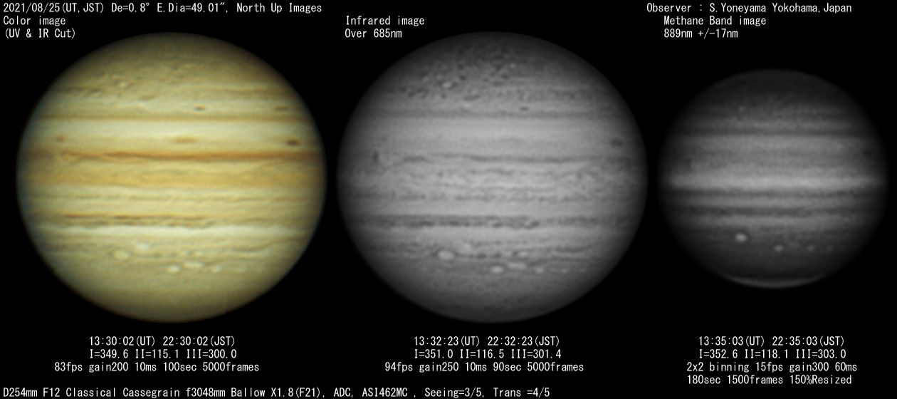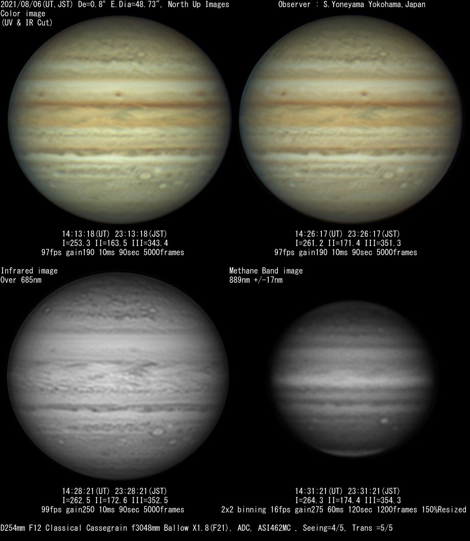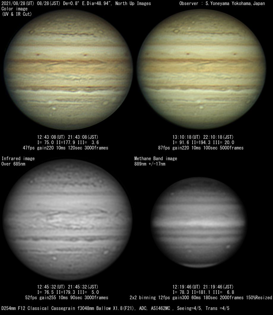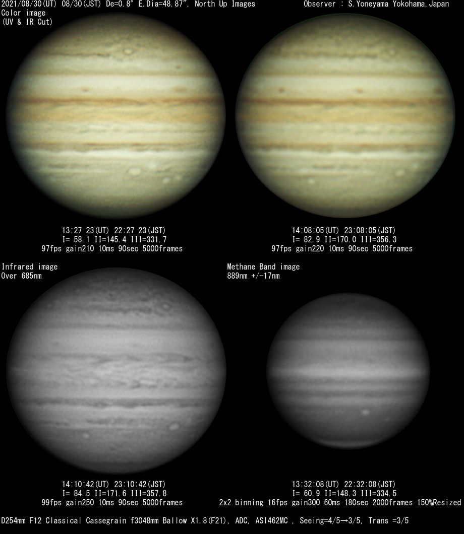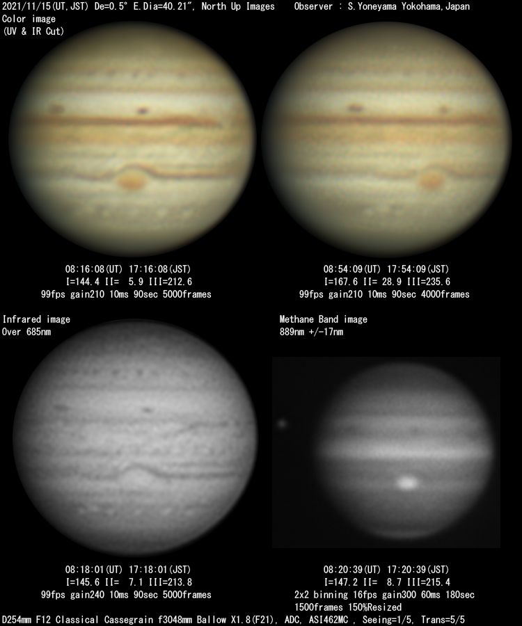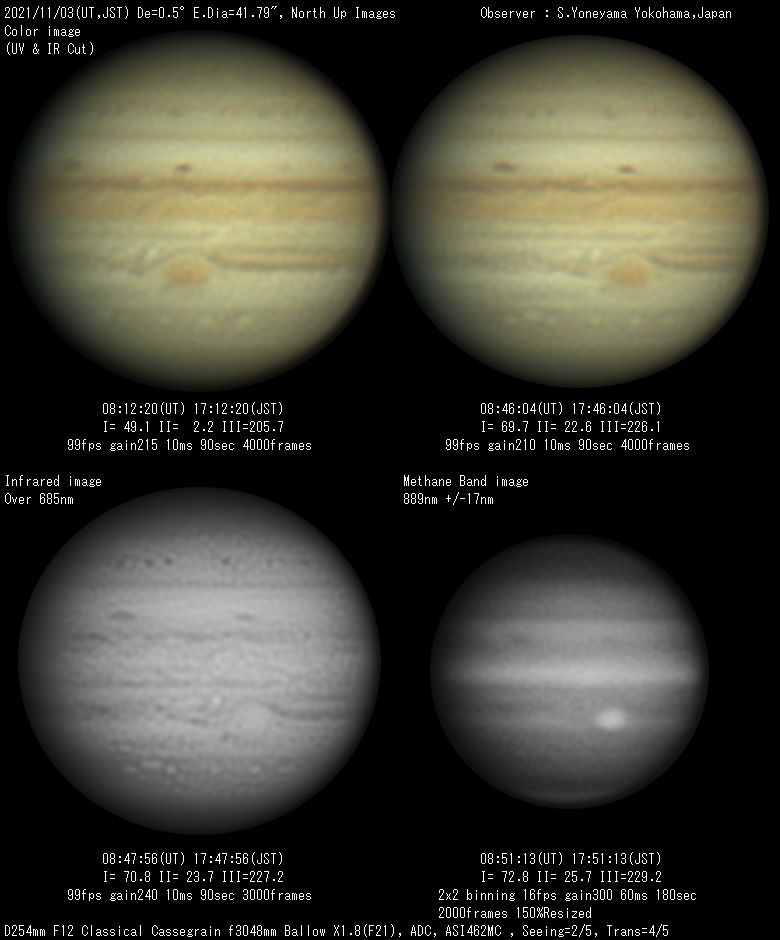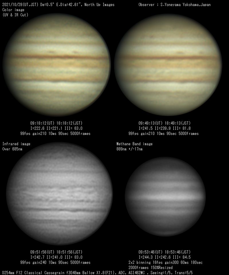 | フィルター | ・可視光用 UV&IR Cut(紫外線&赤外線カット)フィルター ・IR Filter(赤外透過フィルター): バーダーIRパスFilter Over685nm、ASTRONOMIK Pro-Planet Over807nm ・メタンバンドフィルタ :IDAS Methane 890nm 半値幅17nm ・大気分散補正器具 :ZWO ADC(ウェッジプリズムを2枚組合わせた、角度可変タイプ) |