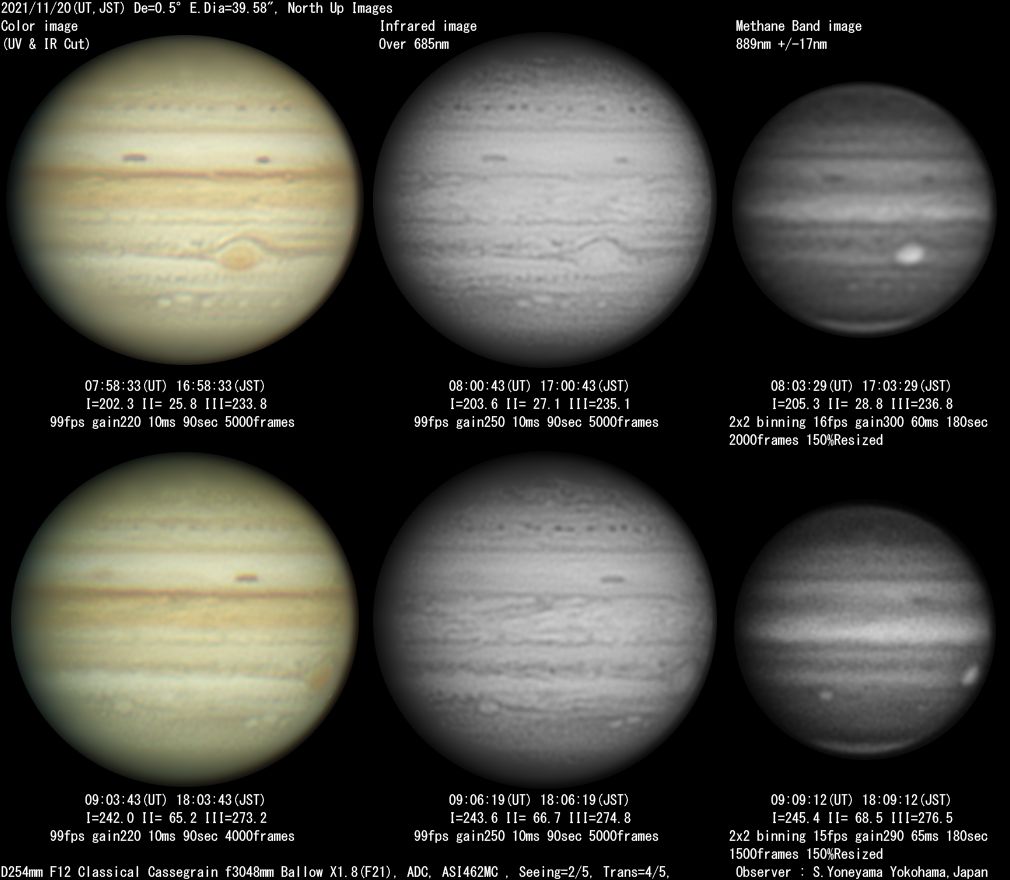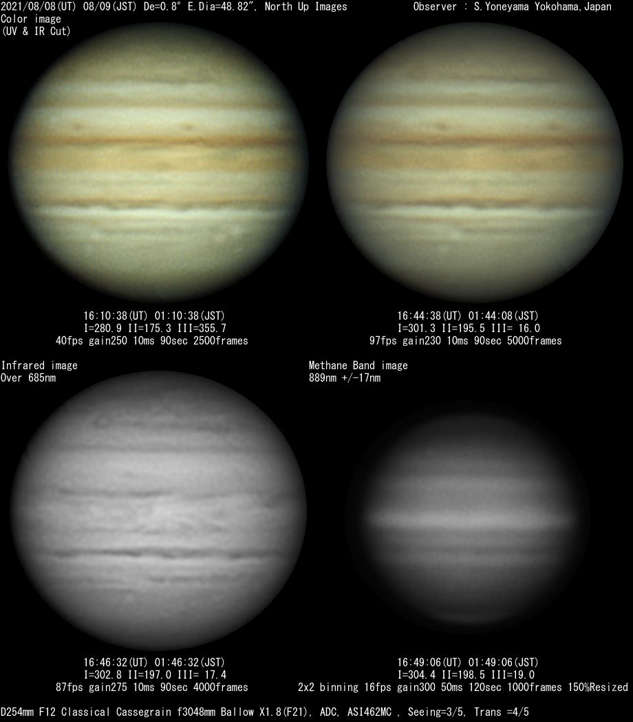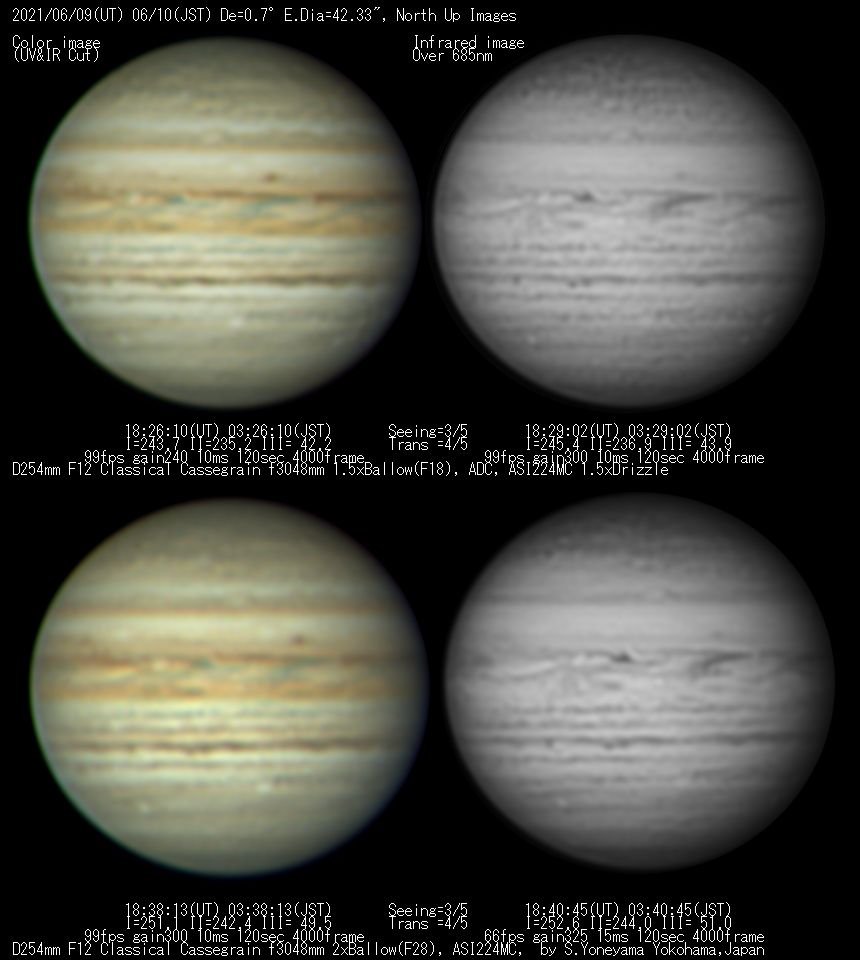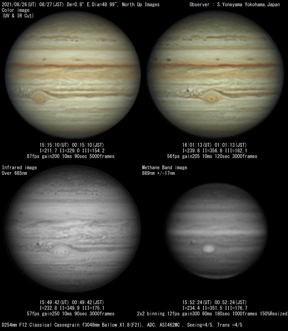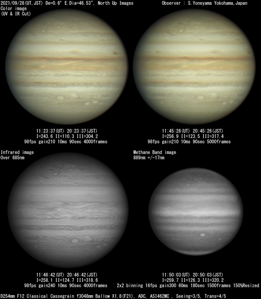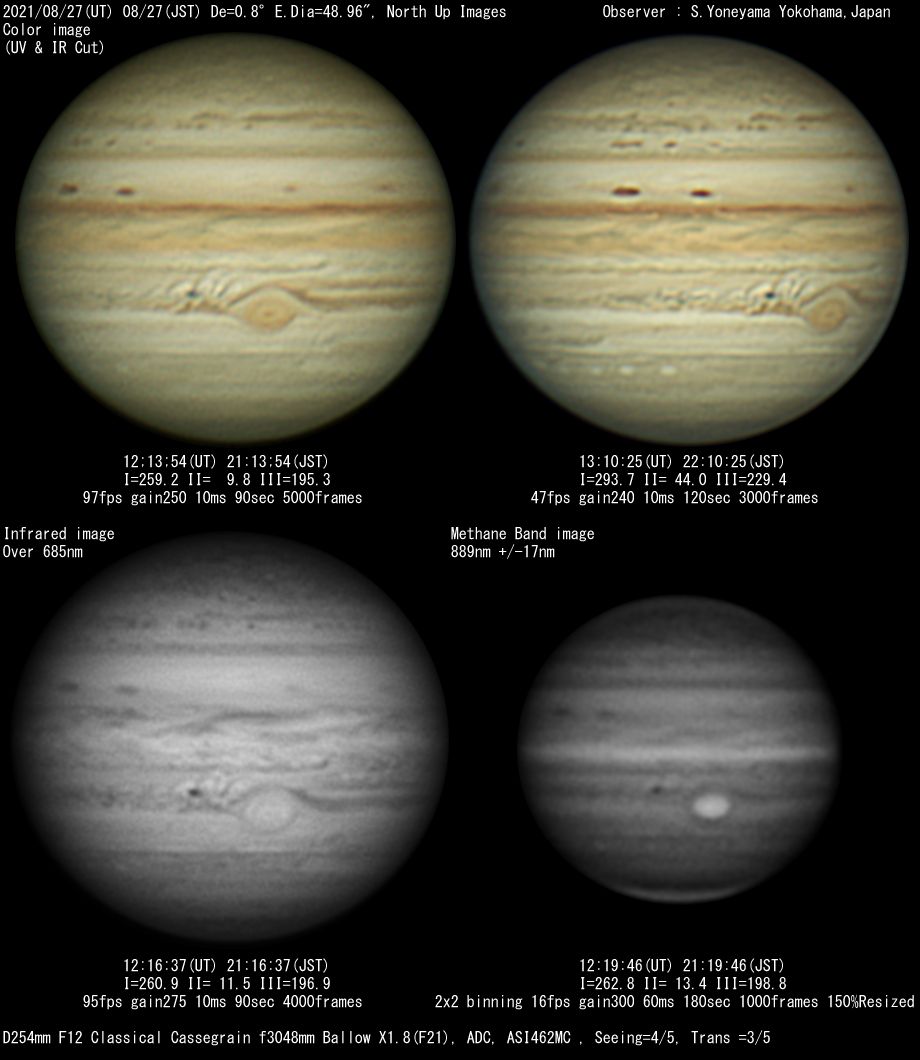 | フィルター | ・可視光用 UV&IR Cut(紫外線&赤外線カット)フィルター ・IR Filter(赤外透過フィルター): バーダーIRパスFilter Over685nm、ASTRONOMIK Pro-Planet Over807nm ・メタンバンドフィルタ :IDAS Methane 890nm 半値幅17nm ・大気分散補正器具 :ZWO ADC(ウェッジプリズムを2枚組合わせた、角度可変タイプ) |