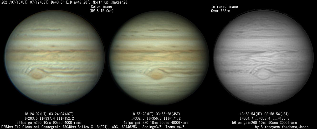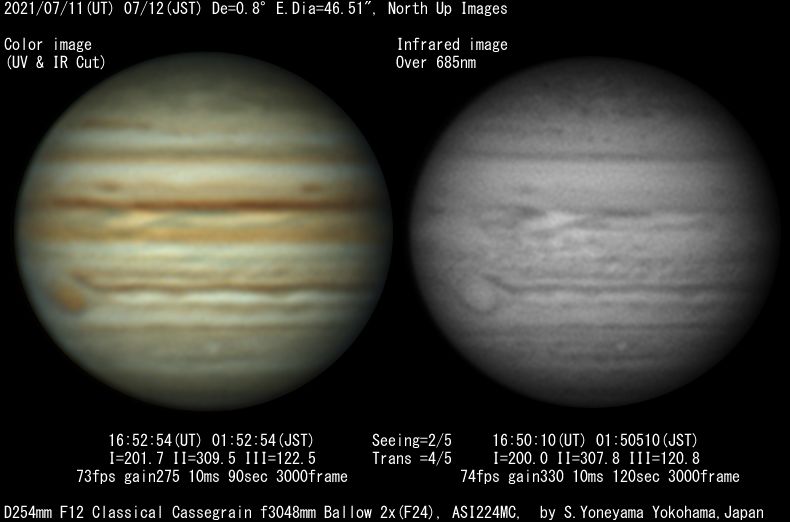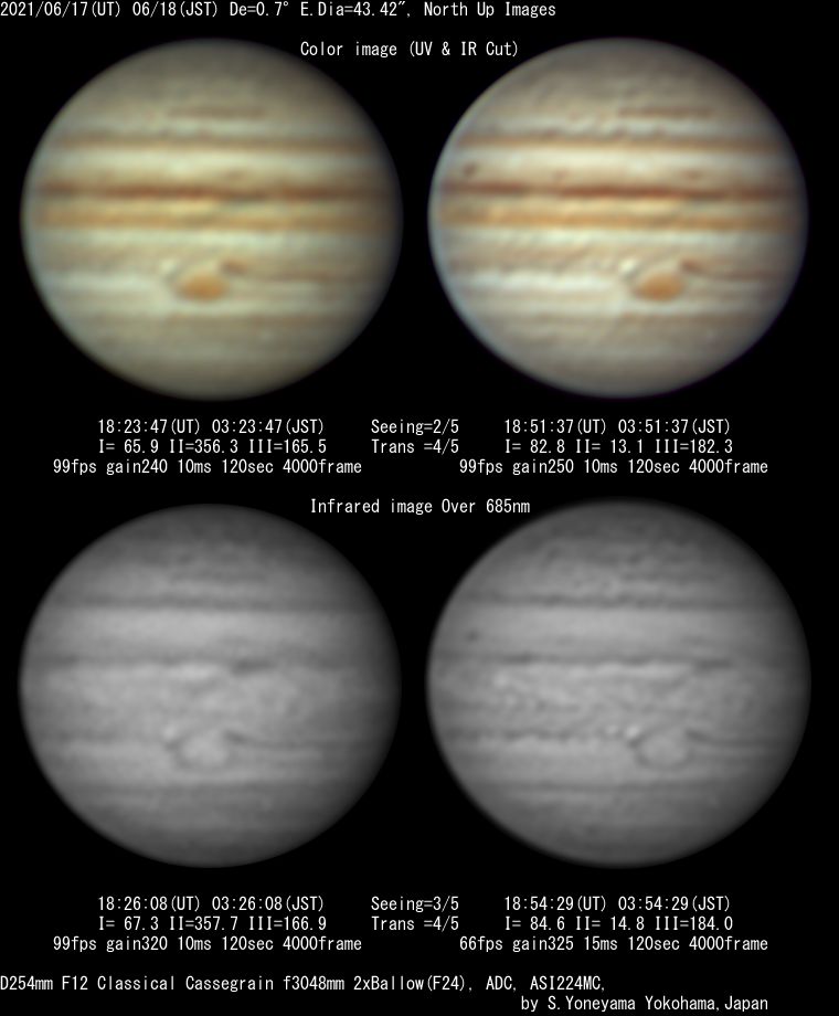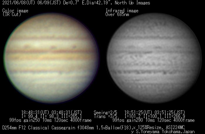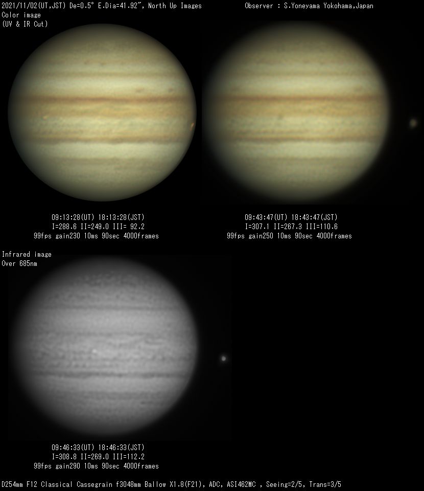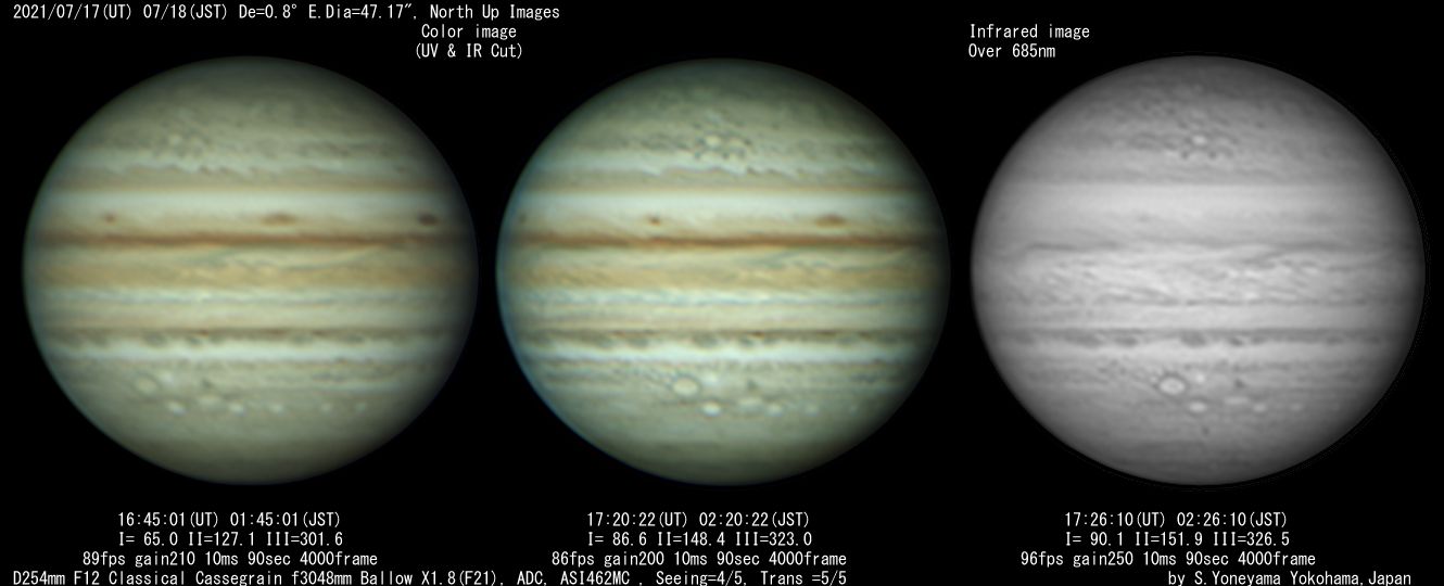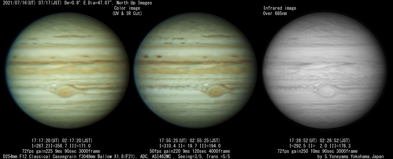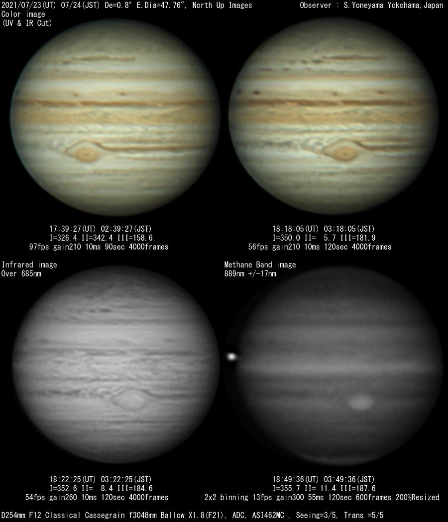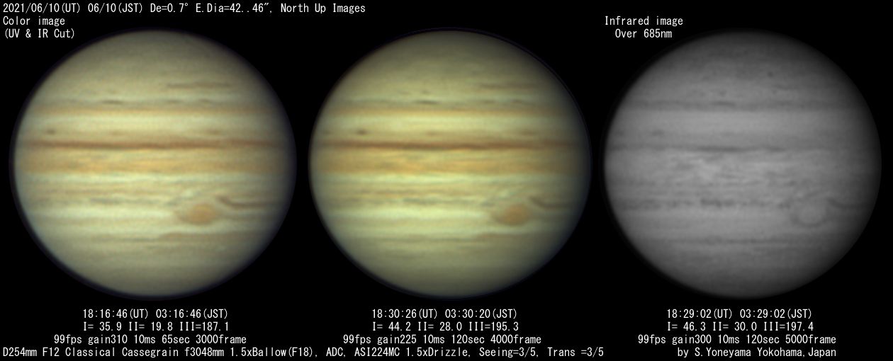 | フィルター | ・可視光用 UV&IR Cut(紫外線&赤外線カット)フィルター ・IR Filter(赤外透過フィルター): バーダーIRパスFilter Over685nm、ASTRONOMIK Pro-Planet Over807nm ・メタンバンドフィルタ :IDAS Methane 890nm 半値幅17nm ・大気分散補正器具 :ZWO ADC(ウェッジプリズムを2枚組合わせた、角度可変タイプ) |