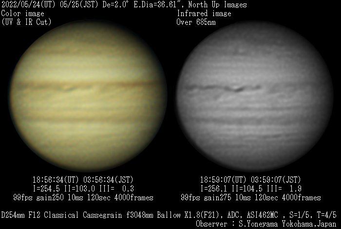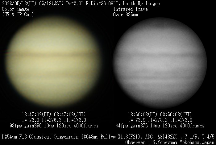 | 画像処理 | 撮影したAVIファイルをAutostakkert3 でアライメント&スタック、Registax にてWavelet処理後、ステライメージ などの画像処理ソフトで画像の細部を明瞭化します |