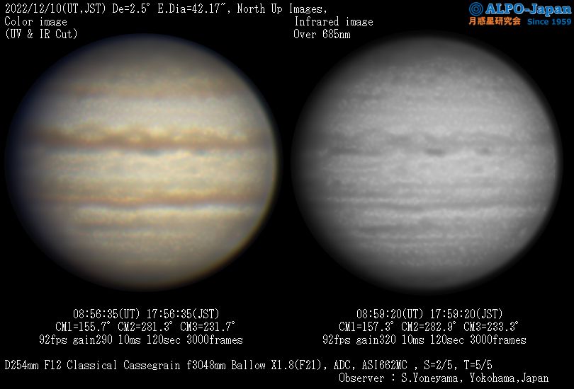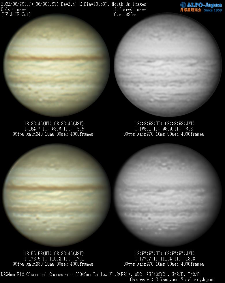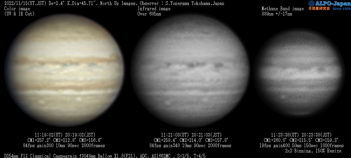 | フィルター | ・可視光用 UV&IR Cut(紫外線&赤外線カット)フィルター ・IR Filter(赤外透過フィルター): バーダーIRパスFilter Over685nm、ASTRONOMIK Pro-Planet Over807nm ・メタンバンドフィルタ :IDAS Methane 890nm 半値幅17nm ・大気分散補正器具 :ZWO ADC(ウェッジプリズムを2枚組合わせた、角度可変タイプ) |