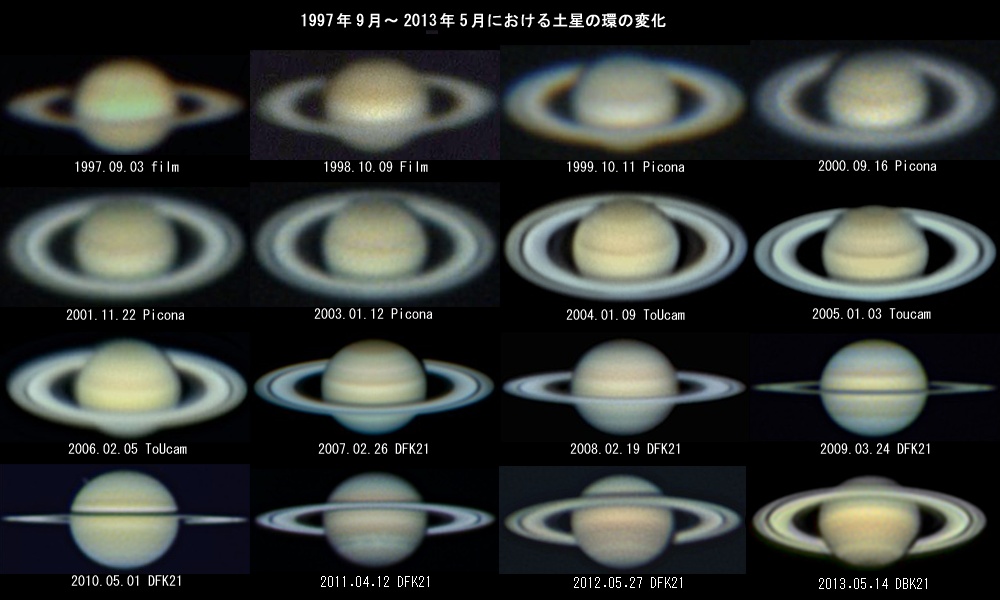| 土星の輪の説明 | 土星の環の衝効果 | 1997年から2013年の環の変化 | ||||||
