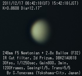 2011年12月17日(UT) シーイング:1、透明度:5 ![]() |