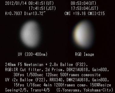 2012年1月14日(UT) シーイング:2、透明度:4 ![]() |