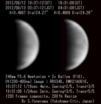 | 2012年8月24日(UT) シーイング:2/5、透明度:3/5 ![]() |