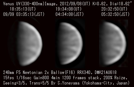 2012年9月8日(UT) シーイング:3/5、透明度:5/5 ![]() |