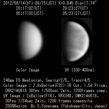 2012年9月14日(UT) シーイング:3/5、透明度:4/5 ![]() |
