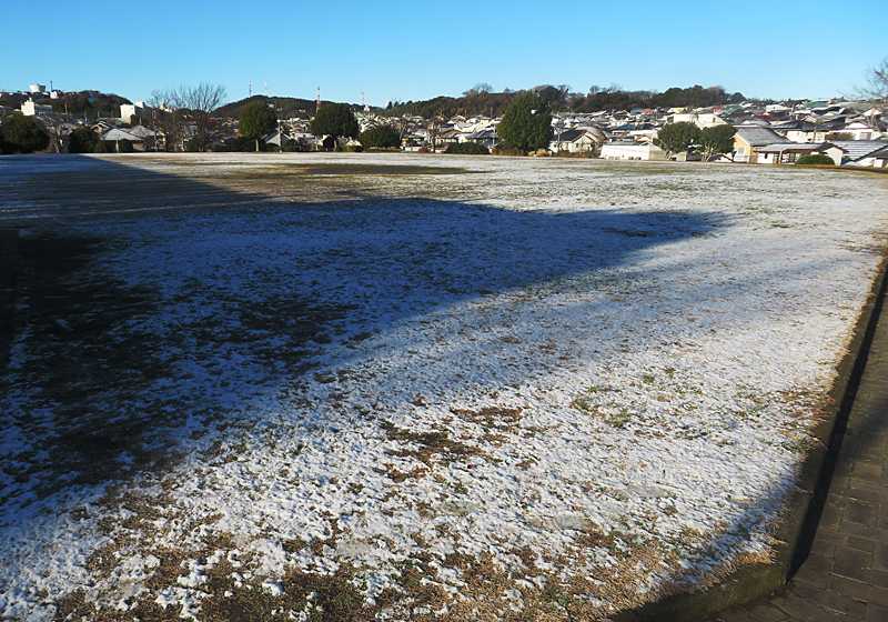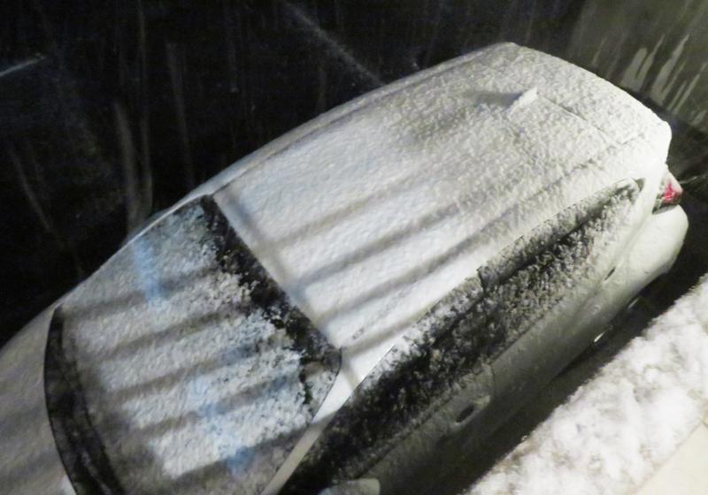 昨夜の宵の口の雪、車の上や屋上・バルコニーに1cmほど積もったけど、道路上にそれほど積もりませんでした。今朝の早朝散歩時、近くの公園や道路脇などの芝生の上などには雪が残っていたけど、路面は雪は無く凍り付いている場所は少なく歩くのに問題はありませんでした。